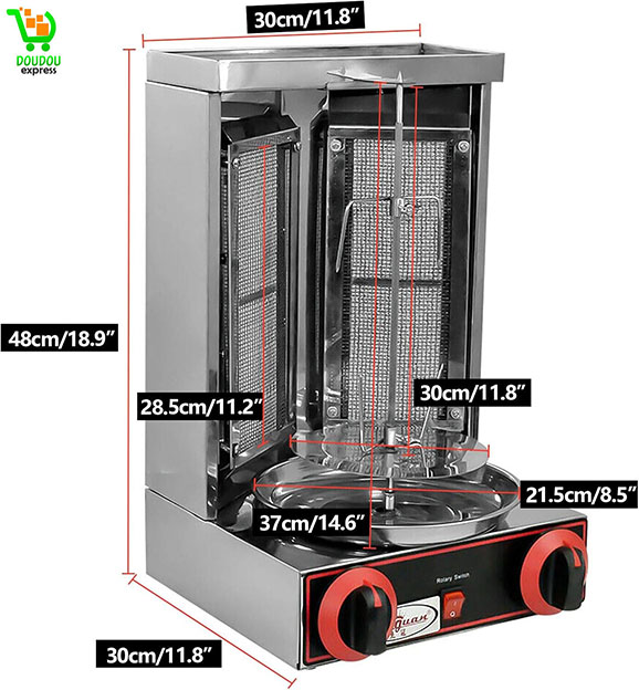 Kebab Grill Professionnel Grill 2 Brûleurs Kebab Grill 3000W Kebab Machine BBQ Brûleurs Rôtissoire Broiler Cuisson